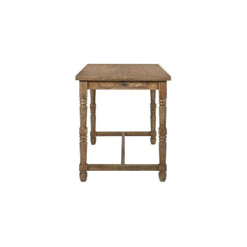 Acme Furniture’s Farsiris Counter Height Table uses a weathered oak finish with a rectangular tabletop and leg base. The tabletop has a 36 mm thickness and is counter height. The table is finished in a Weathered Oak color that highlights the beauty of the wood. Try setting it at the center of your dining room, then enjoy every meal from sophisticated dinner parties to casual family breakfasts. The multifunctional dining table can be used for many occasions such as living rooms, kitchen, courtyard parties, outdoor picnics and offices, and so on.