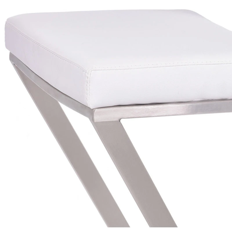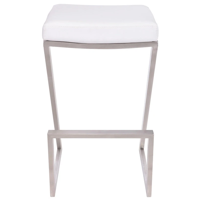 The Armen Living Atlantis 26″ Counter Height Backless White Faux Leather and Brushed Stainless Steel Bar Stool is the perfect addition to any home! The unique Z-shaped metal base is not only a stylish design feature but also provides optimal support to the upholstered seat. This kitchen counter stool easily tucks away under your peninsula, kitchen island, or home bar and effortlessly incorporates into any house regardless of style theme. The soft faux leather upholstery is wrapped around a high-density foam cushion that keeps you or your guests comfortably seated. The armless design also for easy movement and can be moved as close as needed when using with a working surface. The Atlantis Backless Faux Leather and Brushed Stainless Steel bar stool is available with your choice of black, grey, or white faux leather upholstery and features a sturdy brushed stainless-steel base.