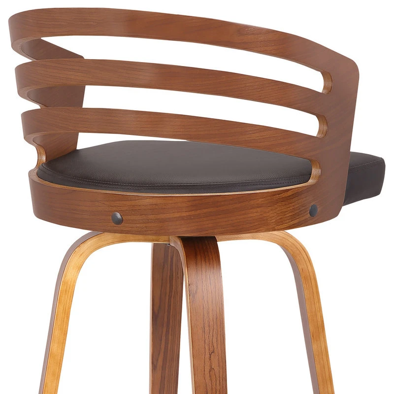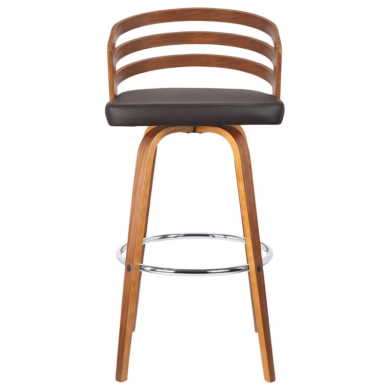 The Armen Living Jayden mid-century barstool is the perfect addition to any contemporary, modern or transitional household. Though ideal for the kitchen or bar, the Jayden’s stylish walnut wood frame and faux leather upholstered seat make it versatile for just about any room of the house. While appearing stationary, the Jayden features a 360-degree swivel feature for maximum mobility. The plush padded seat with high density foam will provide you with all day comfort. The curved wood back is ideal for posture alignment and an unmatched support for days on end. The foundation of the product is supported by wood and chrome footrest for a chic and stylish aesthetic without comprising practicality and functionality of this item. This product ships in one box with easy and quick set up. We stand by the quality, the craftsmanship and the integrity of our product by offer 1-year for all our products. We want our customers enjoy our product and we will always be there to help with our top-notch customer service support. The Jayden is available in 26-inch counter and 30-inch bar Height and is available in your choice of brown or grey faux leather. Product dimensions: 19″W x 19″D x 35″H SH: 26