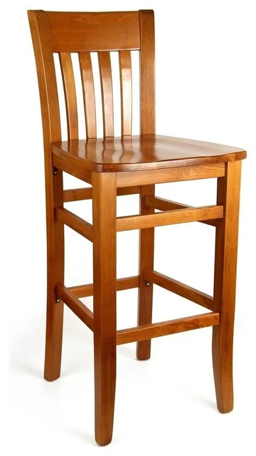 The Jacob Bar Stool makes a stylish addition to a kitchen or dining table. Made from solid cherry wood with a vertically slatted back, this stool is simple and classic. Display it in a Craftsman-style space for a coordinated look.