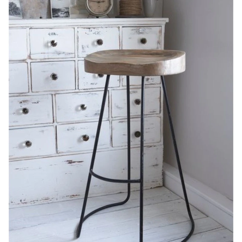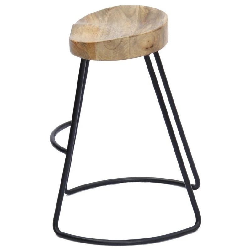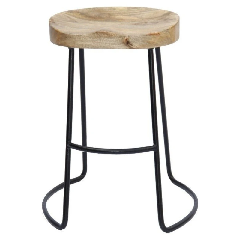 Wooden Saddle Seat Barstool with Tubular Metal Base, Small, Brown and BlackUpgrade the look of your home bar setting by bringing this industrial style barstool, featuring a tubular iron base. With natural wood grain texture details, Its sturdy construction features mango wood saddle seat that supported on sled legs with a curved footrest that provides rest to your feet. It comes with a blend of natural brown and black finish that gives it an industrial appeal. Perfectly designed, this barstool will be a great addition in restaurants, cafes, and bistros.
