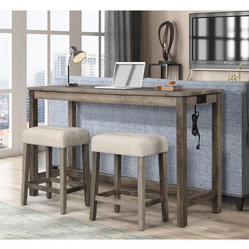This timeless design bar table that is also durable and sleek, will be perfect for any occasion. The bar table is made out of engineered wood. The table will comfortably accommodate 2 adults. Smooth and dark wood grain finish table top will be easy to match with any room design. The bar table also includes 2 USB ports and an electrical outlet for charging needs.