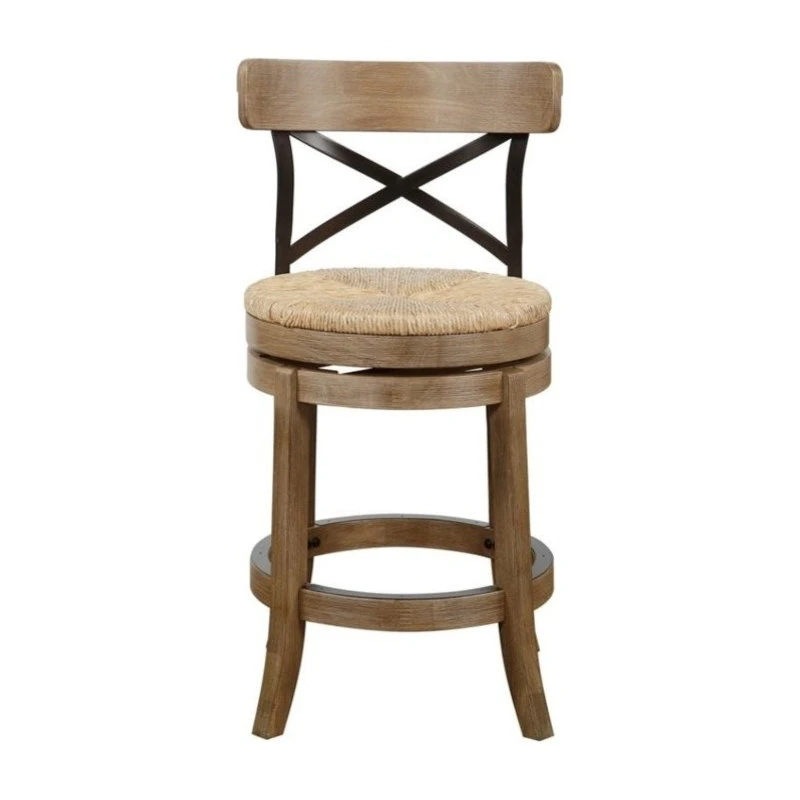 With its 360-degree swivel mechanism and solid hardwood footrest, the Wire Myrtle Counter Stool was designed with your comfort in mind. This stool also features a wooden backrest and a sedge-woven seat for extra doses of support. Exuding a warm, luxurious feel thanks to its rich colors and sumptuous textures, this stool makes a sophisticated addition to any interior space.