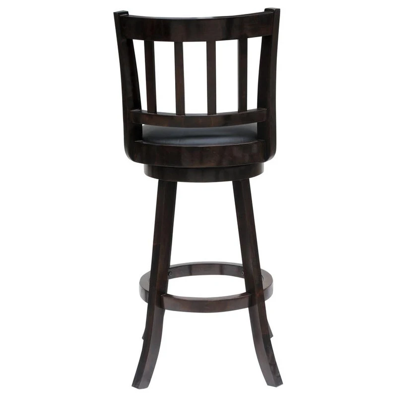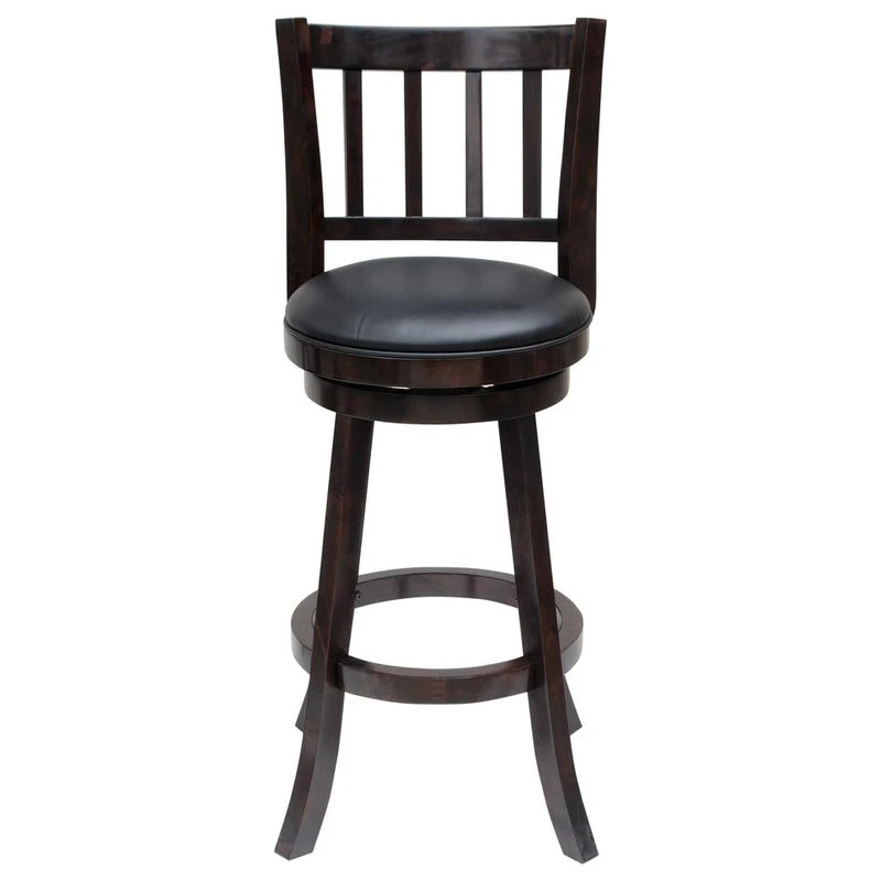 The Bloomington Bar Stool brings home absolute comfort in a sleek, traditional package. The bar stool’s rich wood finish and black faux leather offer classic good looks and durability. Meanwhile, the high-density foam padding, full-ring footrest, and 360-degree swivel also promise the Bloomington is a comfortable, inviting seat at a home bar or in a den or game room. Also available in counter height options.