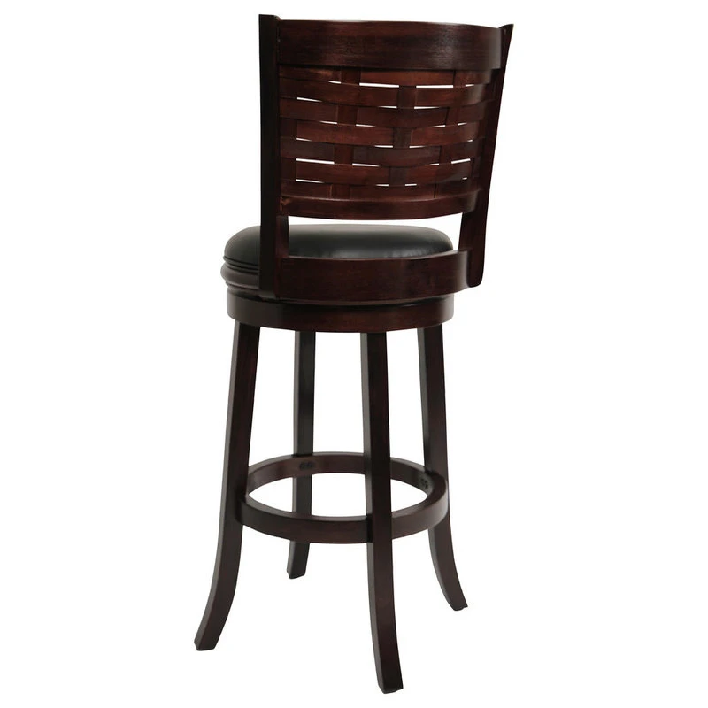 The Sumatra Swivel Stool from Boraam Industries, Inc. boasts a solid hardwood footrest. Boasting a 360-degree swivel mechanism, this piece has been designed with your comfort in mind. This stool also features a wooden backrest and a high-density foam seat cushion upholstered in shiny black bonded leather. Exuding a warm, luxurious feel, thanks to its rich colors and sumptuous textures, this swivel stool from Boraam Industries, Inc. makes a sophisticated addition to any interior space.