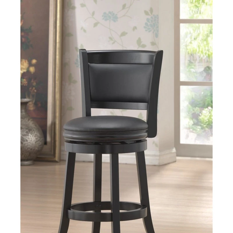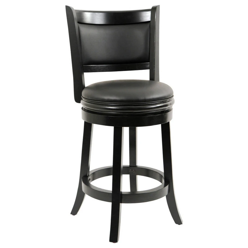 Augusta 24″ Counter Stool – BlackSafety, durability, and design are all wrapped up in one package with the Boraam Augusta Swivel Counter Stool. No matter how long your meal lasts, the stool’s round swivel seat, footrest, and contoured back ensure you’ll be eating in comfort. A 360-degree ball-bearing swivel plate promises durability. Thanks to the solid hardwood construction and stability stretchers on the stool’s base (which also double as a footrest), you’ll get long-lasting use out of this piece. Finally, faux leather upholstery covers fire-retardant high-density foam in the seat and the back.