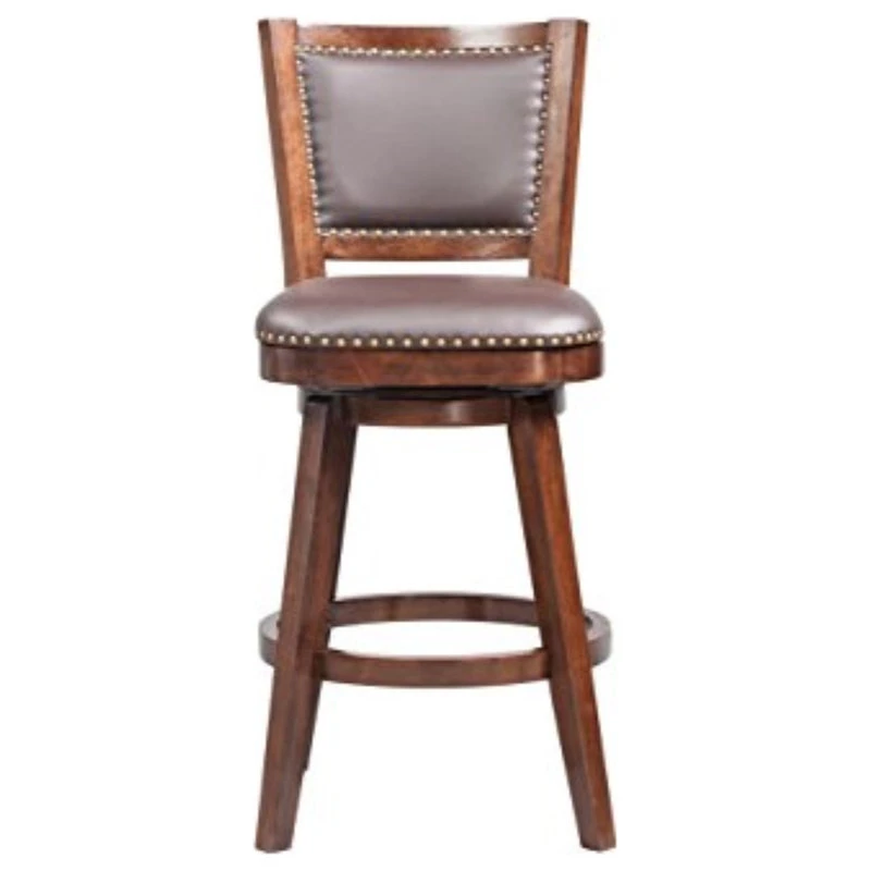 Broadmoor Swivel Barstool [Cappuccino]51829 Broadmoor Swivel Barstool [Cappuccino], Finish off your bar, den, or game room in traditional style with the Broadmoor Swivel Stool. Crafted from solid rubberwood, this stool comes in your choice of Cherry or Cappuccino finishes. For your comfort, it features a swivel, built-in footrest, and padded seat and backrest. The faux leather polyurethane upholstery is easy to wipe clean in case of spills or crumbs. Protective floor glides on the base guard your hard floors against scratches or scuffs. The Broadmoor is available in counter, bar, and extra tall height options.
