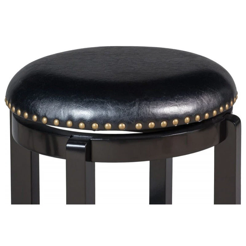 The Cordova Swivel Stool from Boraam Industries, Inc. boasts a solid hardwood footrest. Boasting a 360-degree swivel mechanism, this piece has been designed with your comfort in mind. This stool also features a high-density foam seat cushion upholstered in shiny black bonded leather and adorned with 17th Century-inspired genuine brass nailhead detailing. Exuding a warm, luxurious feel, thanks to its rich colors and sumptuous textures, this swivel stool from Boraam Industries, Inc. makes a sophisticated addition to any interior space.