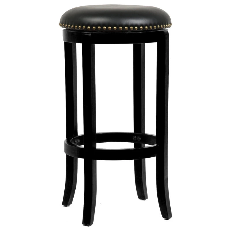 The Cordova Swivel Stool from Boraam Industries, Inc. boasts a solid hardwood footrest. Boasting a 360-degree swivel mechanism, this piece has been designed with your comfort in mind. This stool also features a high-density foam seat cushion upholstered in shiny black bonded leather and adorned with 17th Century-inspired genuine brass nailhead detailing. Exuding a warm, luxurious feel, thanks to its rich colors and sumptuous textures, this swivel stool from Boraam Industries, Inc. makes a sophisticated addition to any interior space.