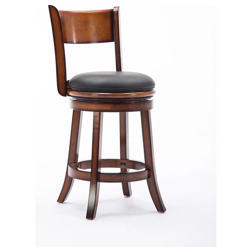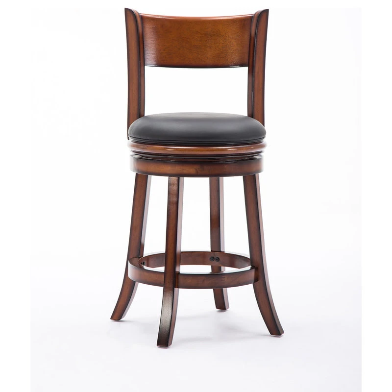 The Palmetto Swivel Stool from Boraam Industries, Inc. boasts a solid hardwood footrest. Boasting a 360-degree swivel mechanism, this piece has been designed with your comfort in mind. This stool also features a wooden backrest and a high-density foam seat cushion upholstered in shiny black bonded leather. Exuding a warm, luxurious feel, thanks to its rich colors and sumptuous textures, this swivel stool from Boraam Industries, Inc. makes a sophisticated addition to any interior space.