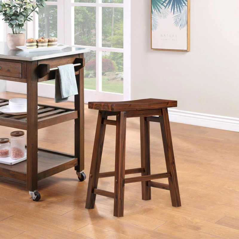 Bring attractive rustic style to your kitchen island with the Sonoma Saddle Counter or Bar Stool. Our Sonoma saddle stool is made from solid rubberwood. This environmentally friendly wood is prized for its hardiness and attractive grain. We use a multistep wire-brush finish which enhances the natural beauty of the wood even more. It’s built for long-lasting stability and comfort, thanks to a wide, curved saddle seat and built-in footrests. Choose from our selection of available finish options: Barnwood, Chestnut, and Storm Gray. Seat height available in counter (24 inch) and bar (29 inch).