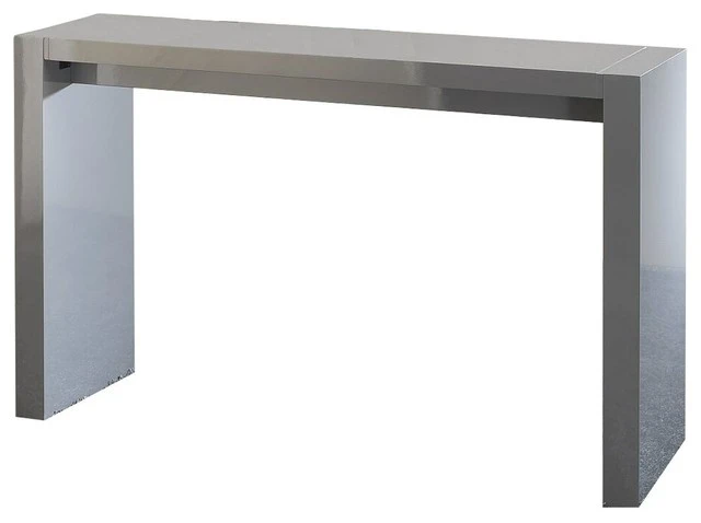 The contemporary, urban style of the Bar Table boasts a clean profile, strong, geometric lines and a gray lacquered finish. Perfect for a small apartment or studio, the bar table can double as a workspace or even as a console table. Measuring 60 inches wide, it can easily accommodate two barstools on each side.
