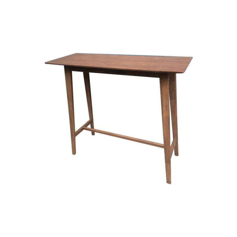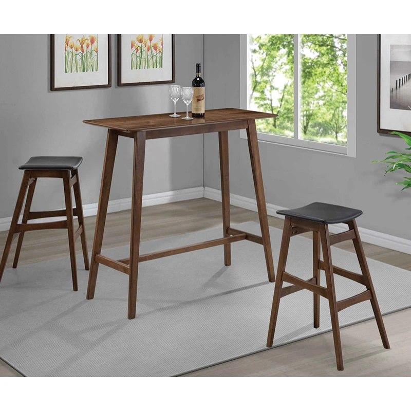 Rectangular Mid-Century Modern Bar Table, Finished In Walnut, Constructed With Solid Hardwood And Walnut Veneer With Matching Backless Bar Stool With Dark Grey Leatherette Upholstered Seat.Features
