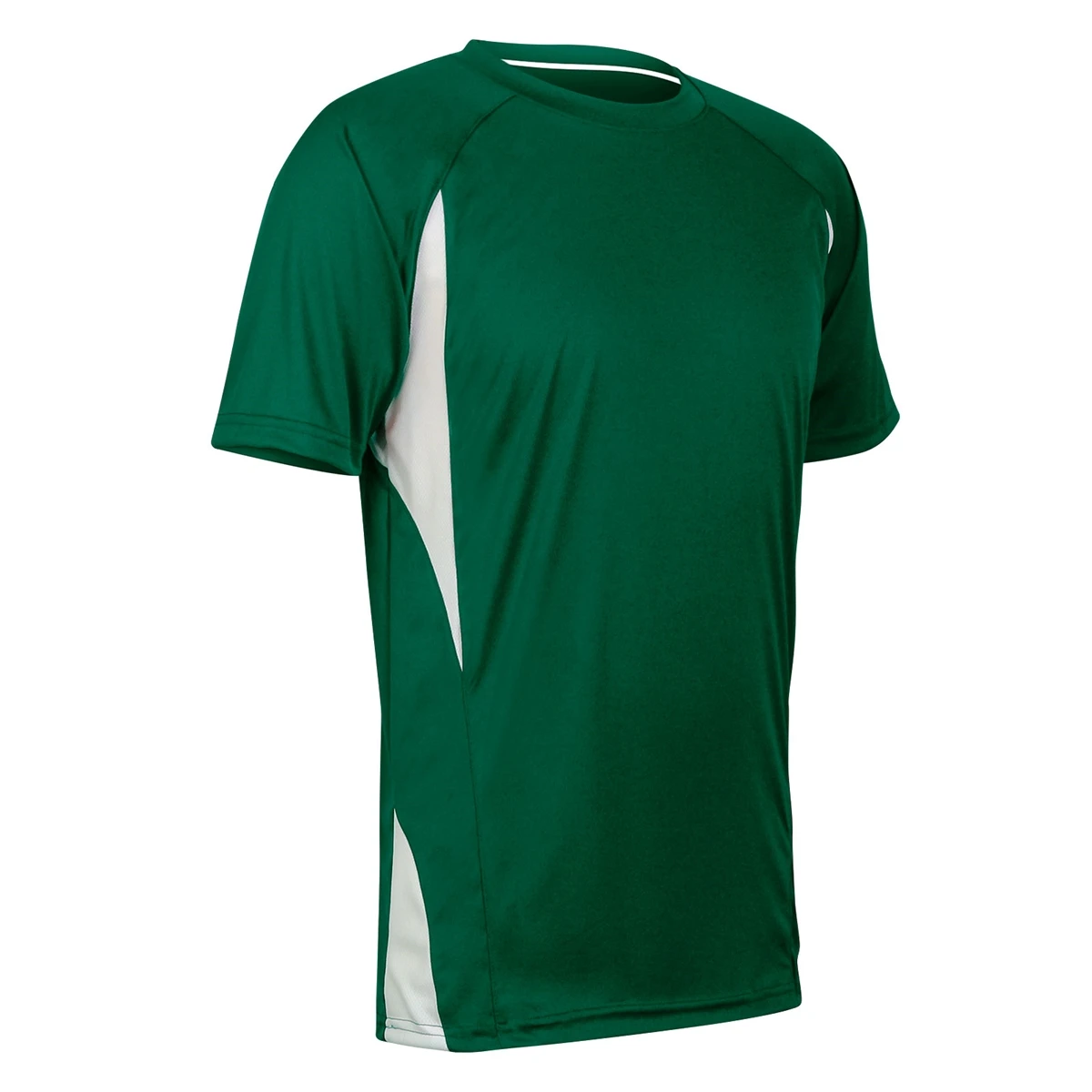 The Champro Top Spin Jersey is a Z-75 lightweight 100% polyester interlock jersey with a fitted cut body. This jersey also features a raglan cut, 1/4 length double needle hemmed sleeve, straight double needle hemmed bottom, and self material crew neck with contrast color on back neck tape.