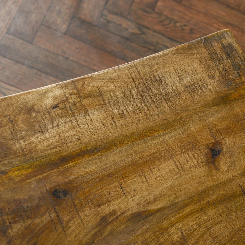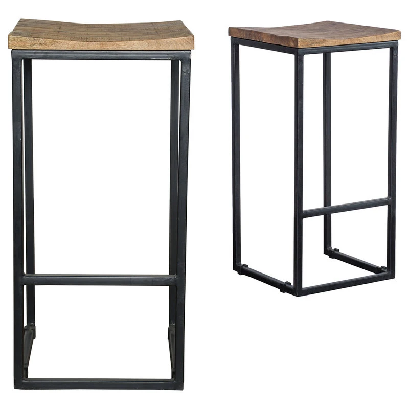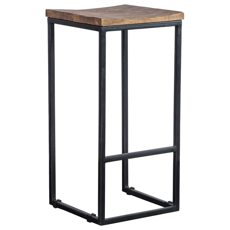 Add a touch of industrial charm to your kitchen or home bar with the Davie Bar Stool. Comprised of a distressed, mango wood seat and iron legs, the stool is both sturdy and comfortable. The piece’s minimal aesthetic allows it to complement neutral and contemporary interiors.