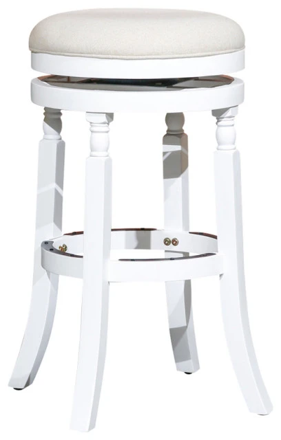 The Palmer Lake bar stool brings together traditional elements and a modern style. Crafted from solid hardwood this stool features a spindle turned leg that is flared for stability, metal-plated footrests for durability, and a 360-degree swivel for mobility. It comes in a modern white or weathered gray finish and your choice of a bonded leather seat or upholstered fabric seat.