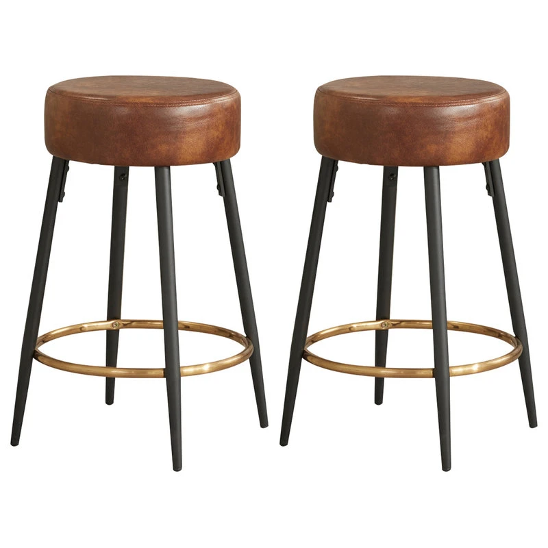 - Casual And Comfortable: The circular seat is wrapped in faux leather upholstery for a touch of comfort,foam padding ensures comfortable seating and the built-in gold footrest keeps things casual and comfortable,luxury and fashion. The metal frames bring understated charm to your space, hold up to a 285 pound weight capacity.