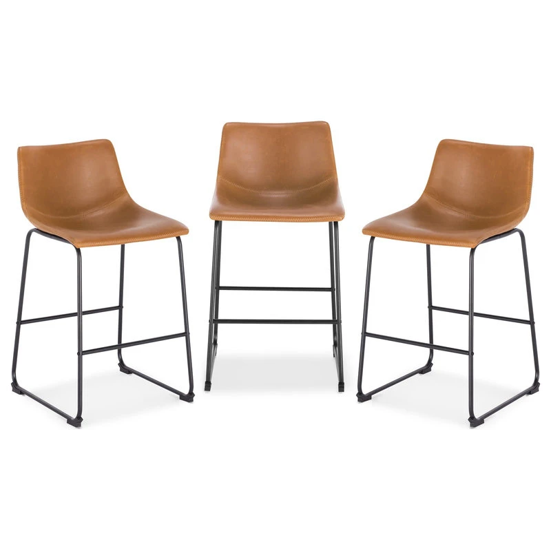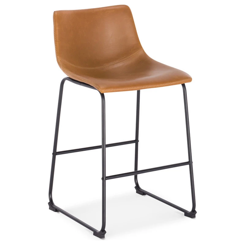Projecting high-end design with its low-profile back, the Brinley Counter Stool brings impressive quality to your kitchen counter or posh restaurant. With a welded steel base and support bars in a matte black powder coating, it’s beautifully built for sustained functionality. Its rich leatherette upholstery displays strong reinforced saddle stitching detail for an extra touch of luxe.