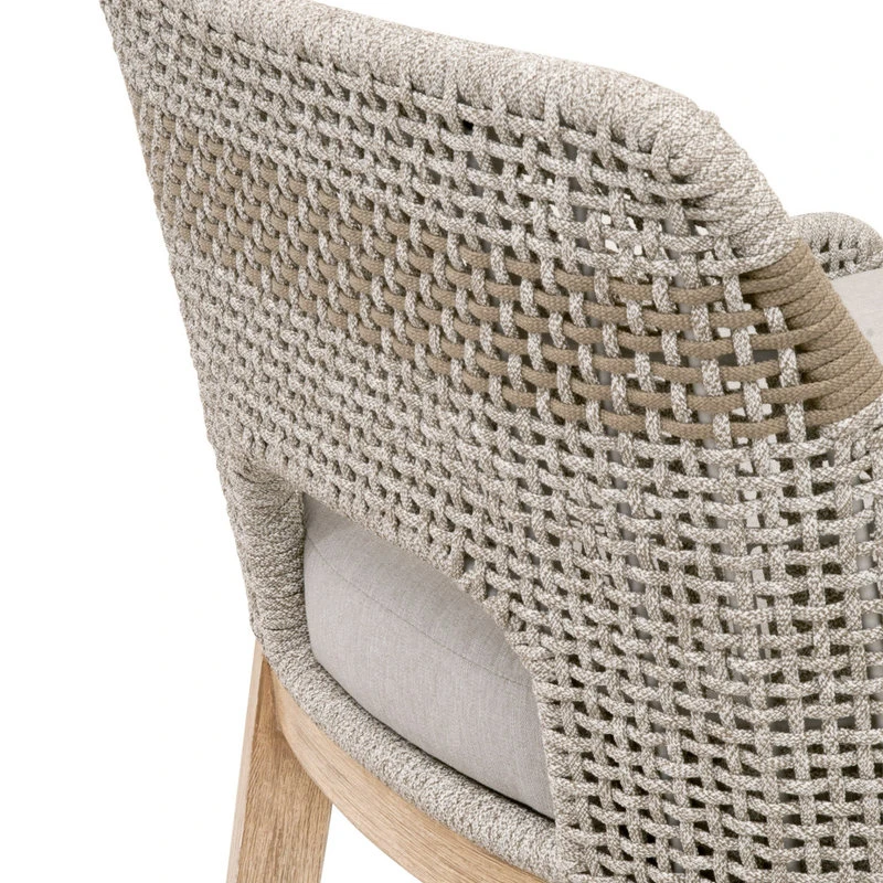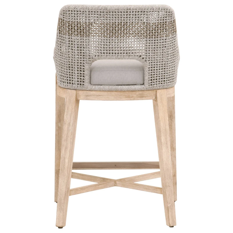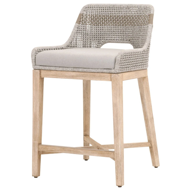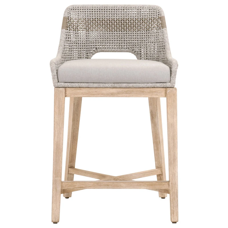 Transitional style counter stool featuring solid Mahogany frame and interwoven White Flat Rope design.