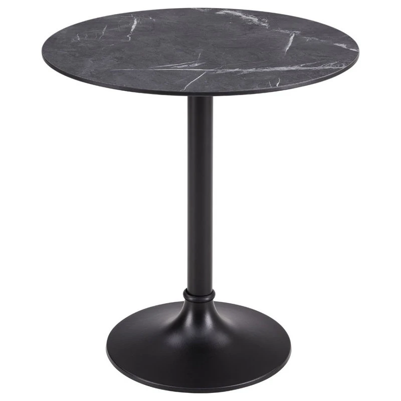 This 30-inch round dining table features a dark gray high pressure laminated top over MDF top with a marble pattern and iron column and base. The Jannie’s versatile design allows it to be a perfect addition to almost any dining room.