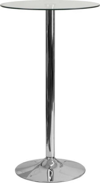 Whether you’re hosting the holidays or need additional table space at your venue, this bar height, round glass table can add a timeless elegance to your design. This table can be used for seating placement, cocktail hour or for decorative purposes. The table has a narrow design so there is plenty of room for larger tables to be set up. The round, chrome base is out of the way when guests are socializing and adds a contemporary chic design. The base is fitted with a protective plastic ring, made to prevent your floor from being scratched. This table can be used as a standalone option or with the use of similarly designed adjustable height barstools.