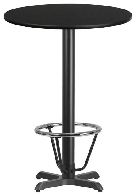 Complete your restaurant, break room or cafeteria with this table top and base configuration. This set is designed for commercial use to withstand the daily rigors in the hospitality industry. This set will also make a great option for your home as a dining table or in the rec room. The reversible black or mahogany top allows you to choose your color of choice and then affix to the base. Surface is heat, scratch and moisture resistant. Use a mild detergent and water, dry clean to keep your tables spotless. The convenient foot rest is the perfect accessory for a bar table, especially in the hospitality industry. Whether you are just starting your business or upgrading your furniture this table set will complete the look.
