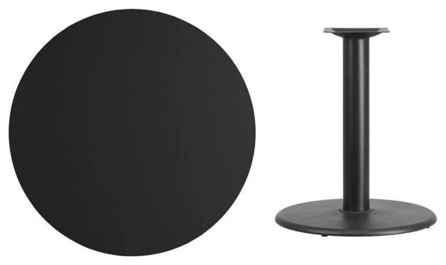 - Table Top with Table Height Base. Black Laminate Top. Black Powder Coated Finish.