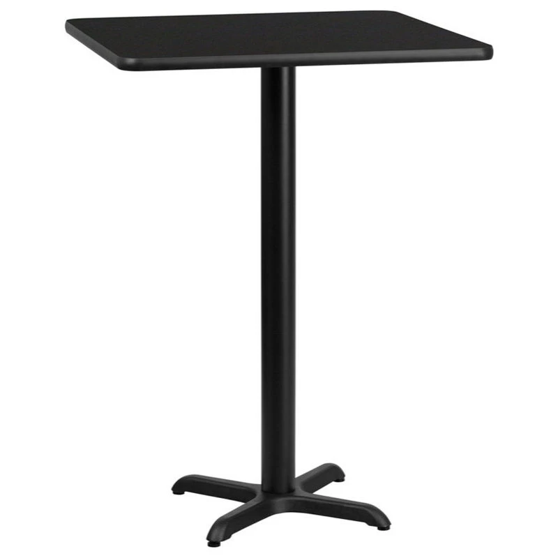 Complete your restaurant, break room or cafeteria with this bar height table top and base configuration. This set is designed for commercial use to withstand the daily rigors in the hospitality industry. This set will also make a great option for your home as a dining table or in the rec room. The reversible black or mahogany top allows you to choose your color of choice and then affix to the base. Surface is heat, scratch and moisture resistant. Use a mild detergent and water, dry clean to keep your tables spotless. Whether you are just starting your business or upgrading your furniture this bar table set will complete the look. [XU-BLKTB-2424-T2222B-GG]