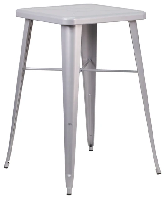 24″ Square Silver Metal Indoor-Outdoor Bar Height Table [CH-31330-SIL-GG] 27.75″W x 27.75″D x 40″H