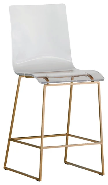 Pairing a clean, translucent seat with a shimmering golden base, the Gabby King Acrylic Iron Base Bar Stool creates a stunning visual effect. The seat is comfortably molded and the iron base has an incorporated footrest, making this small stool an especially practical choice for a bar or kitchen counter. Bring a new feel to your home with this spectacle of modern design.