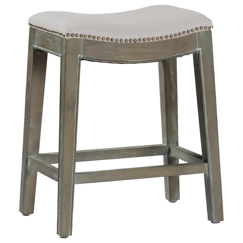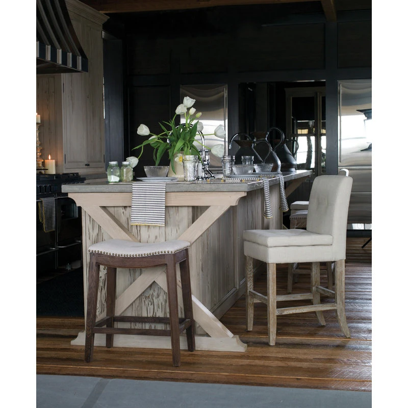 The Gabby Vivian Saddleseat Seat Bar Stool is a casual western-style set made of sturdy solid oak. It pairs a linen-blend fabric with a traditional shape and antique brass nailhead accents. Pieces by GABBY take classic designs and tailor them to the home of today.