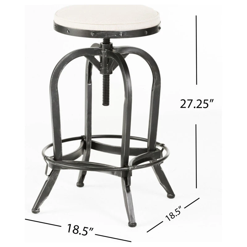 Our exclusive Dempsey adjustable height bar stool echoes the rich majesty of the retro industrial style. The seat height is adjustable from 26.25″ to 33.25″ with a padded seat that swivels 360-degrees. The Dempsey bar stool will definitely imprint unmistakable industrial chick style to your indoor space.