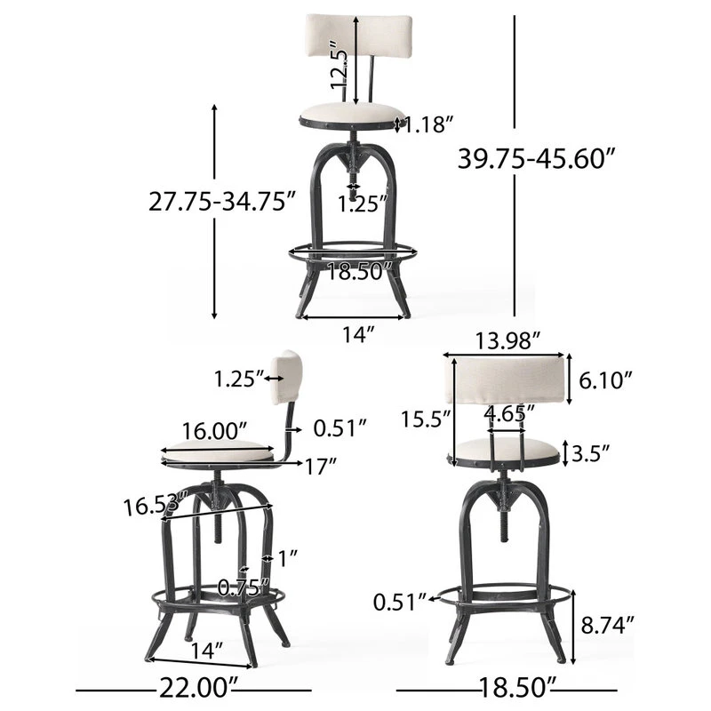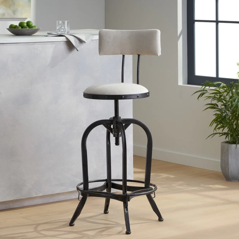 Bring an edgy yet sophisticated atmosphere to your kitchen or bar space with the perfect seating addition. Our barstool offers an exceptional industrial modern appeal for any space with its wrought-iron frame and upholstered seating. Ideal for those who have a variety of guests, this seat offers adjustable and swivel functions for easy maneuverability and personalization, making this a perfect fit for all. With its refined design and flawless capabilities, this impressive barstool allows you to create an atmosphere of raw charm.