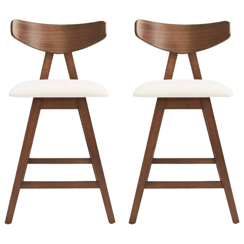 Enrich your indoor dining experience with sophisticated seating that is as stylish as it is comfortable. Featuring elegantly curved backrests, clean V-shape frames, and iconic mid-century modern splayed legs, our counter stool set combines durable rubberwood frames with beautifully upholstered seating that will complement your dining table or bar with a dash of retro charm. Finished with convenient footrails, this beautiful set of counter stools offers a sturdy structure and impeccable design to instantly transform your bar space into an absolute masterpiece.