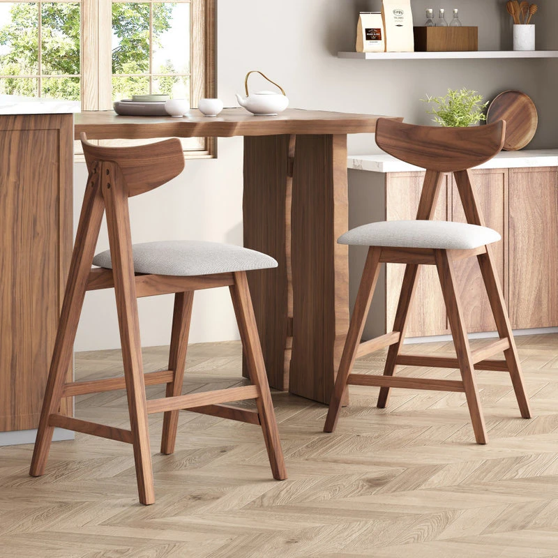 - MID-CENTURY DESIGN: Blending iconic splayed legs with a stunning wood frame, our counter stool set offers a mid-century look to your lounge space. With its V-shaped structure and understated look, this set uses new materials to reimagine a traditional design.