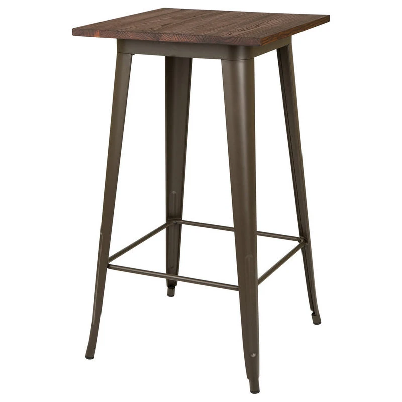 With its top made from elm wood and legs made of steel, this bar table makes a striking impression on those who enter the room. Standing over 41″ tall, this bar table versatile style allows you to place it anywhere in your home and know that it will look great with any decor. You can display it by itself or pull up a chair or two and use it as a table.