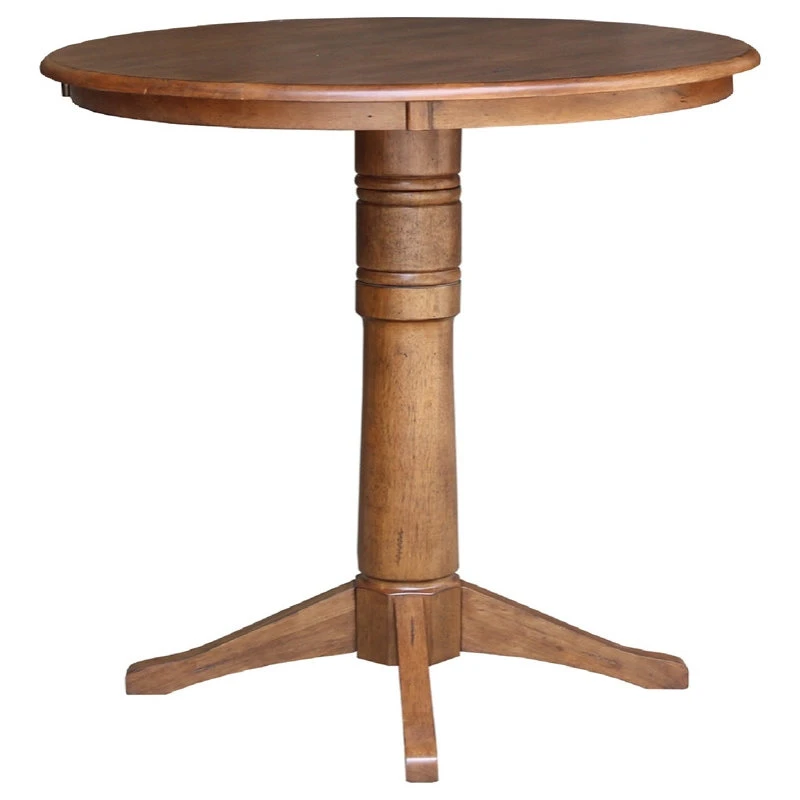 International Concepts home furniture is for those who appreciate high quality, wood furniture with a traditional and elegant look. This beautifully designed 30″ Round Top Pedestal Table constructed in solid wood in a Distressed Oak finish, will easily complement any decor in your home. This 41.9″ Height table would be a perfect addition to your kitchen, dining room or bar area.