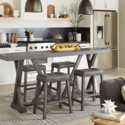 Our most popular bar height stools now have a coordinating pub table. Perfect for providing a gathering, dining or desking space to your den or living areas. Solid wood base and wood veneer top in a walnut brown finish. Be sure to match with stools that have a seat height of 30 to 34″ to provide enough leg room. Flexible and durable enough to be used in the dining room, living room or as extra kitchen counter space. Pair with the Claridge Linen Bar Stool for a perfect set.