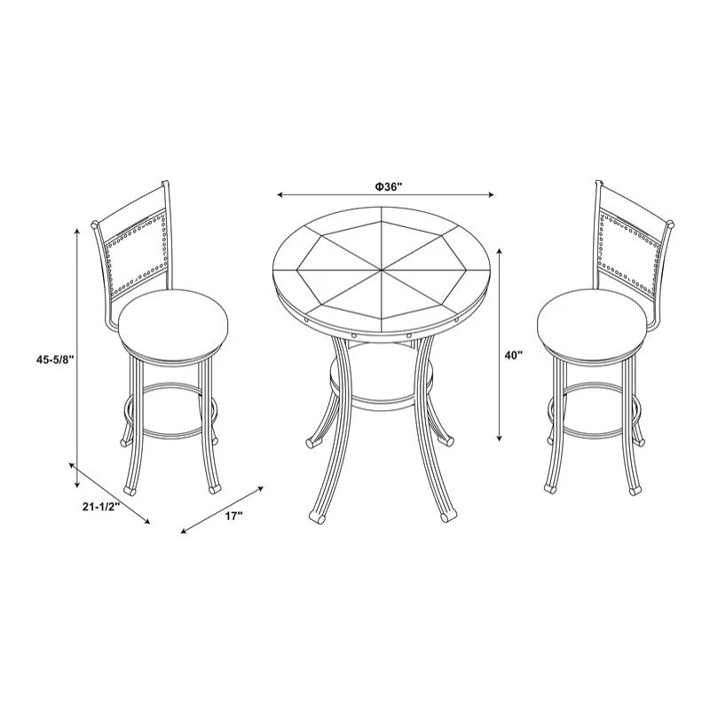 - Product Dimensions : Table: 36″w x 36″d x 40″h, Stool: 17″w x 21.5″d x 45.63″h
