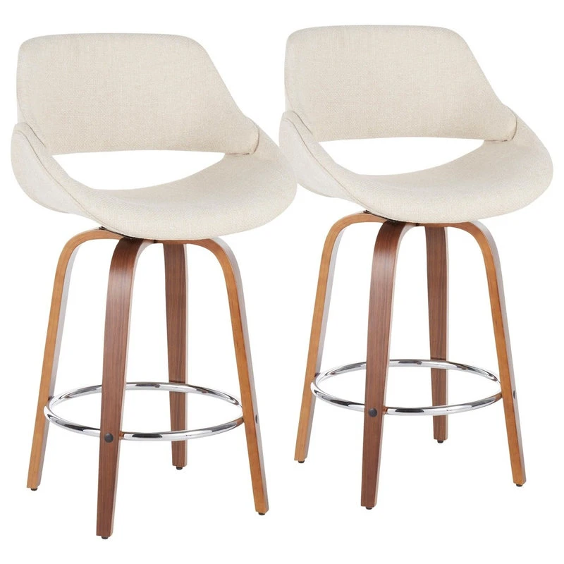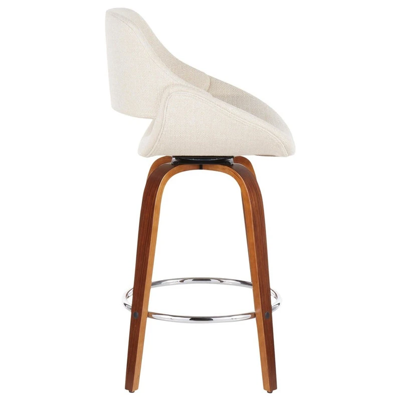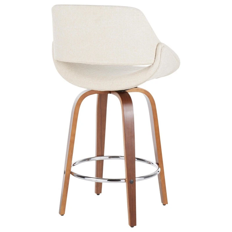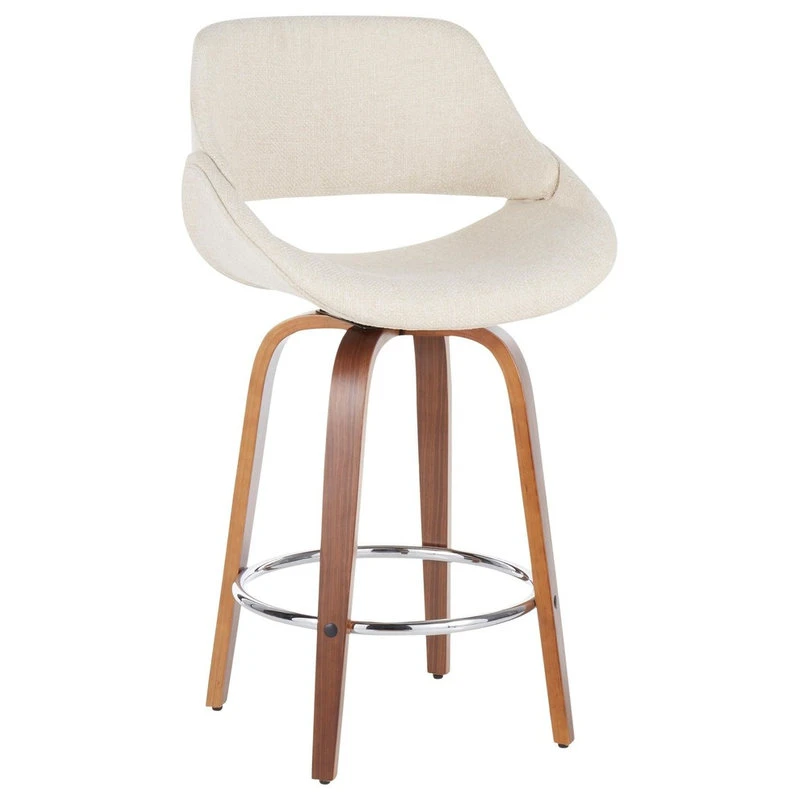 The wide and welcoming seat of the LumiSource Fabrico Counter Stool beckons one to sit and relax. A curved back and contoured upholstered seat is accented by flared walnut wood legs that add to the stylish yet comfortable design. Available in a variety of upholstery colors, choose the one that suits your space best.
