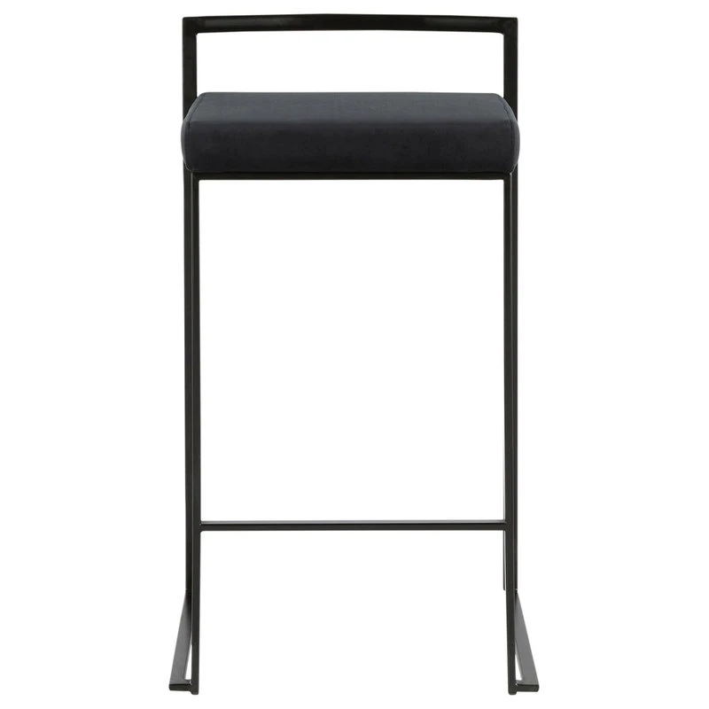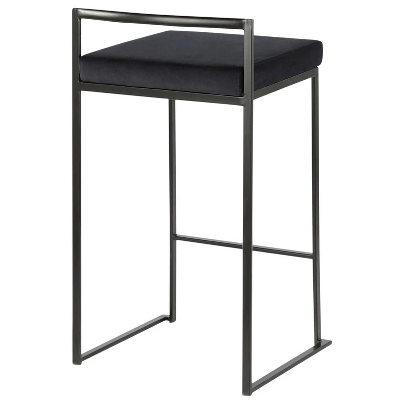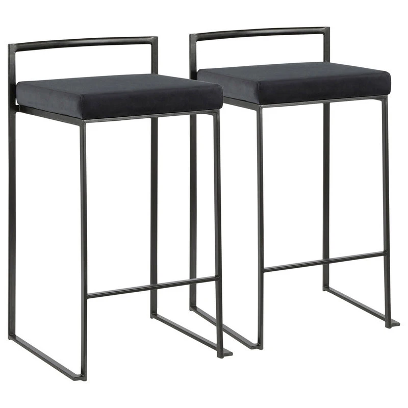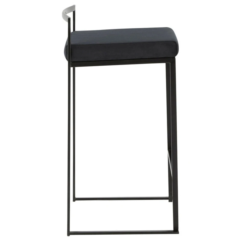 - Fuji Contemporary Stackable Counter Stool in Black with Black Velvet Cushion by LumiSource – Set of 2