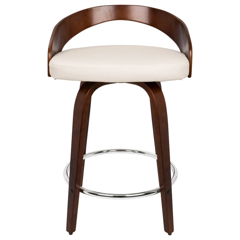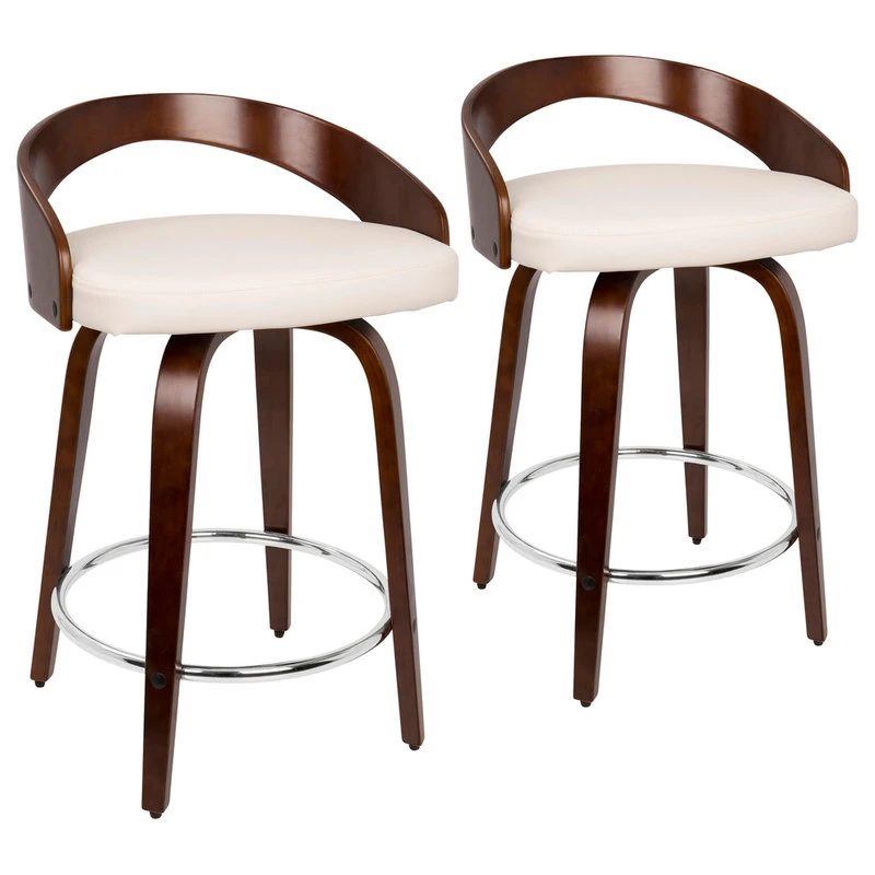 - Grotto Mid-Century Modern Counter Stool with Swivel in Cherry with White Faux Leather by LumiSource – Set of 2