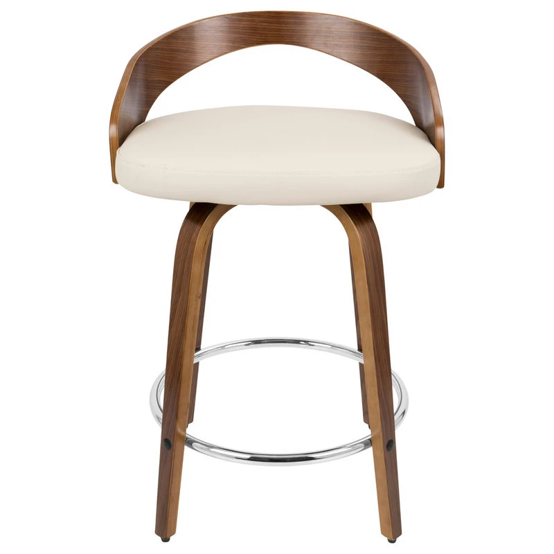 - Grotto Mid-Century Modern Counter Stool with Swivel in Walnut with Cream Faux Leather by LumiSource – Set of 2