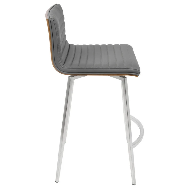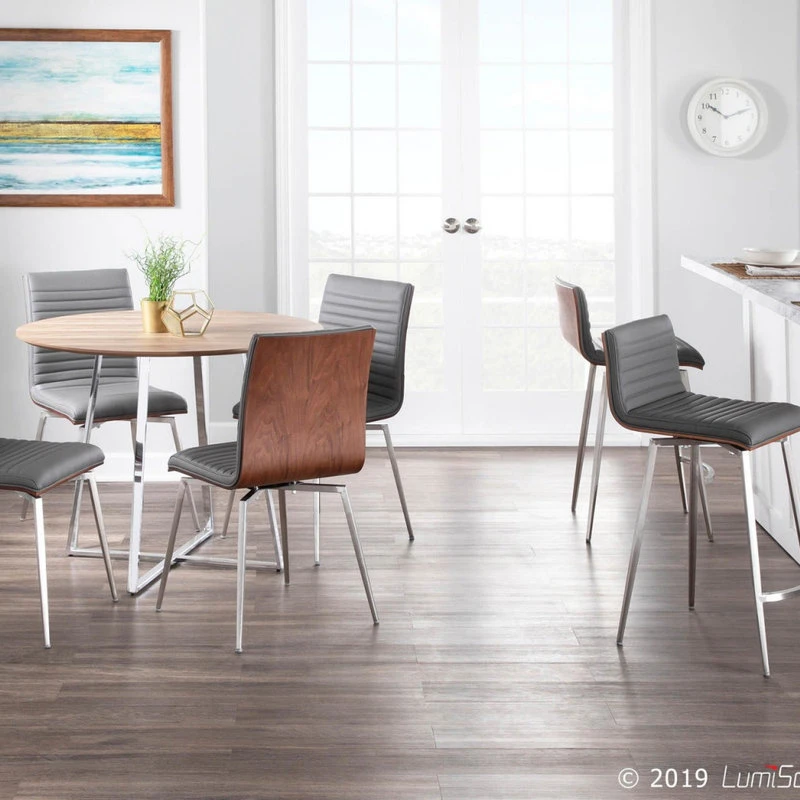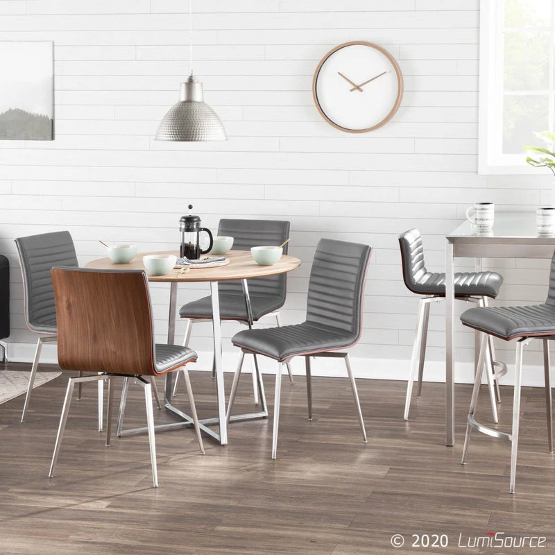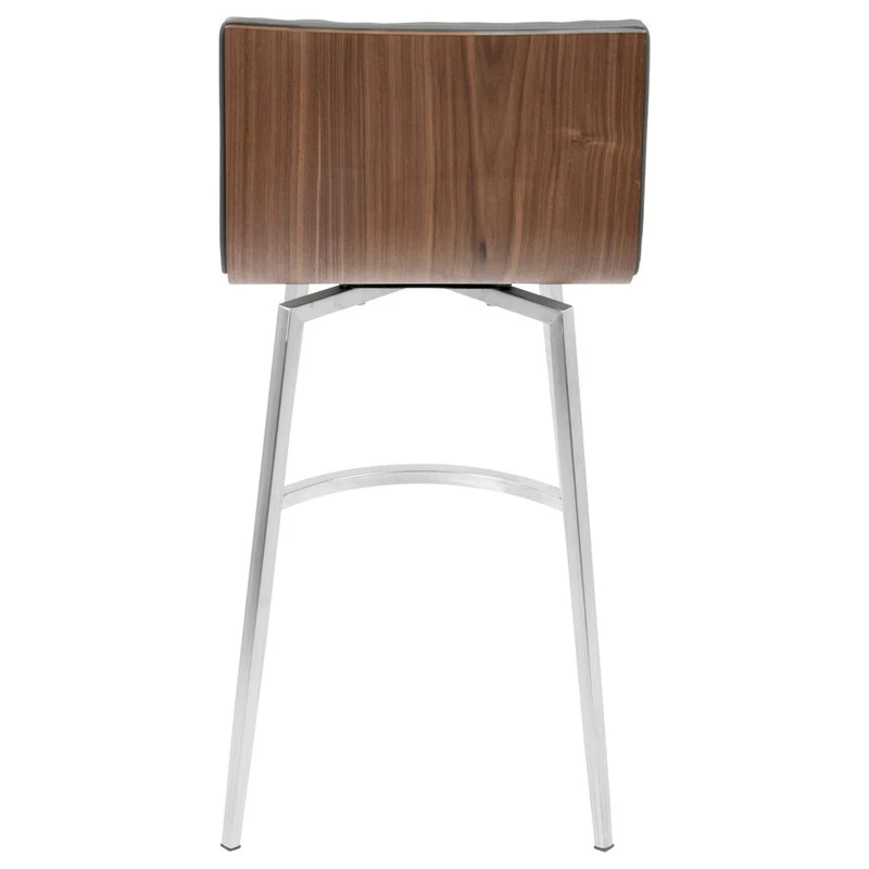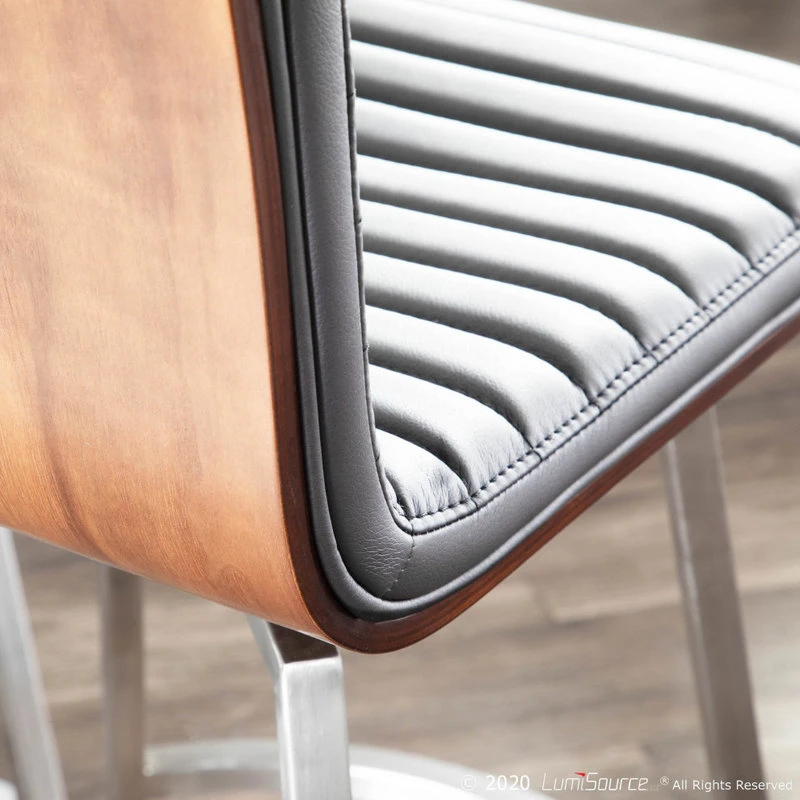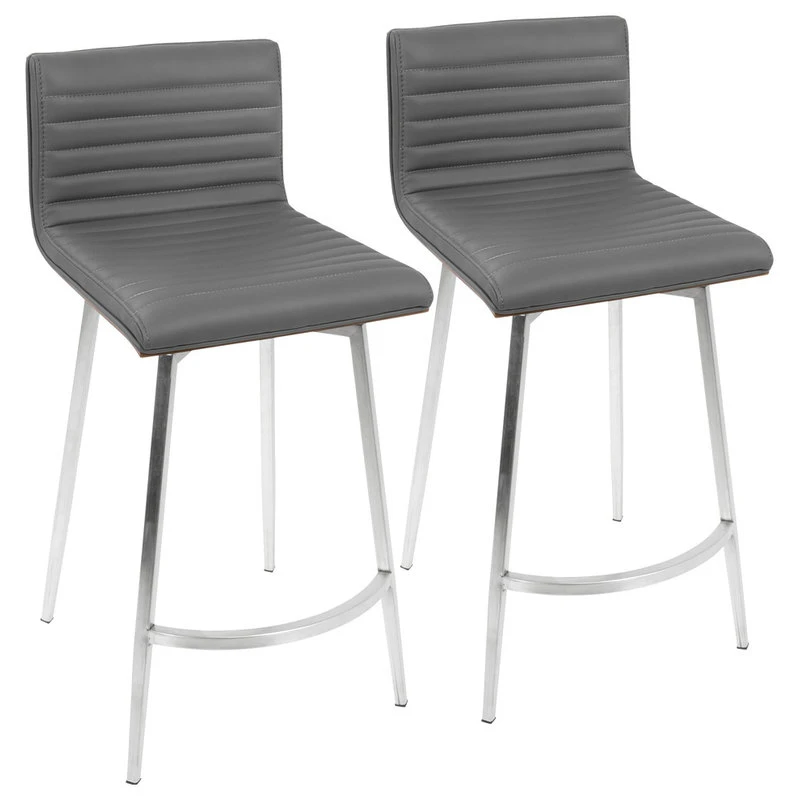 The simple and sleek design of the LumiSource Mason Swivel Counter Stool is versatile and aesthetically pleasing. Featuring a solid wood back, tufted faux leather seat and a stainless steel base, the Mason Swivel Counter Stool will pair nicely with a variety of decor styles.