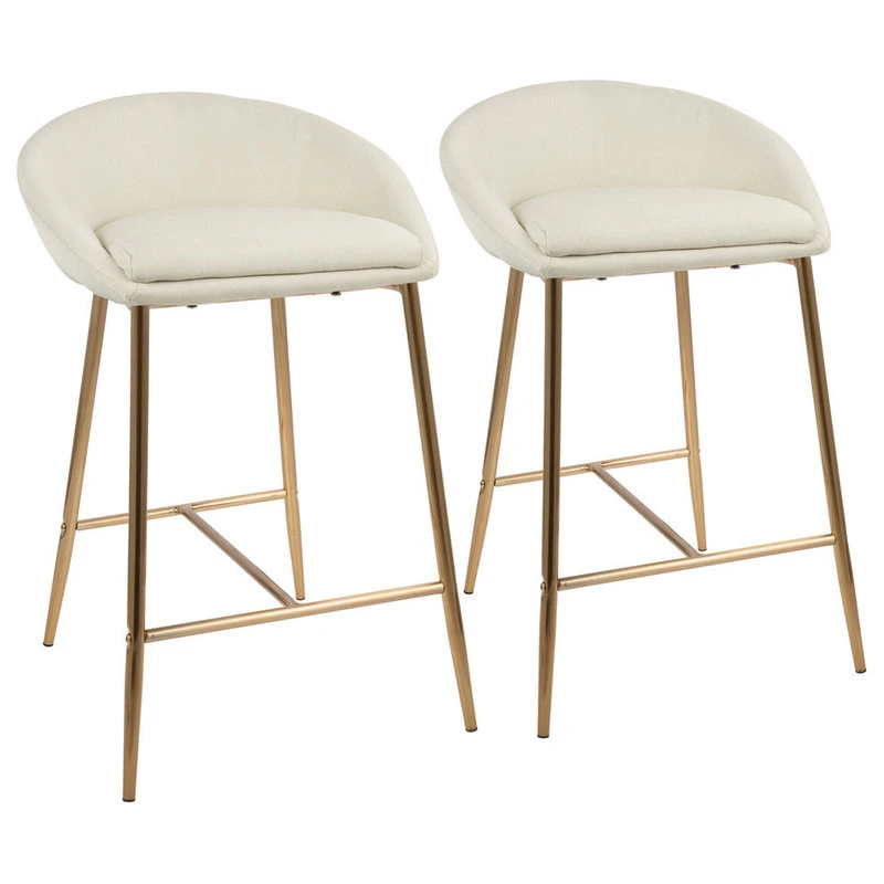 Add the finishing touch to your counter space with the Matisse Glam Counter Stools. The cream fabric upholstery and gold base offer comfort and clean lines to kitchen islands and dining room counters alike. Featuring a rounded low back and a slim trestle-style base, the Matisse Glam Counter Stools provide an elegant feel with modern sensibility.
