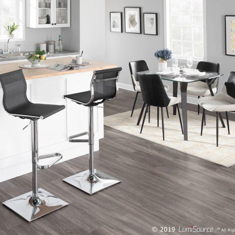 Add a modern touch to your kitchen breakfast bar or office space with the Mirage Adjustable Bar Stool. The perforated design of the seat has a distinctly contemporary feel and contrasts with the sleek, chrome base. The seat height can be adjusted to ensure everyone can sit comfortably.