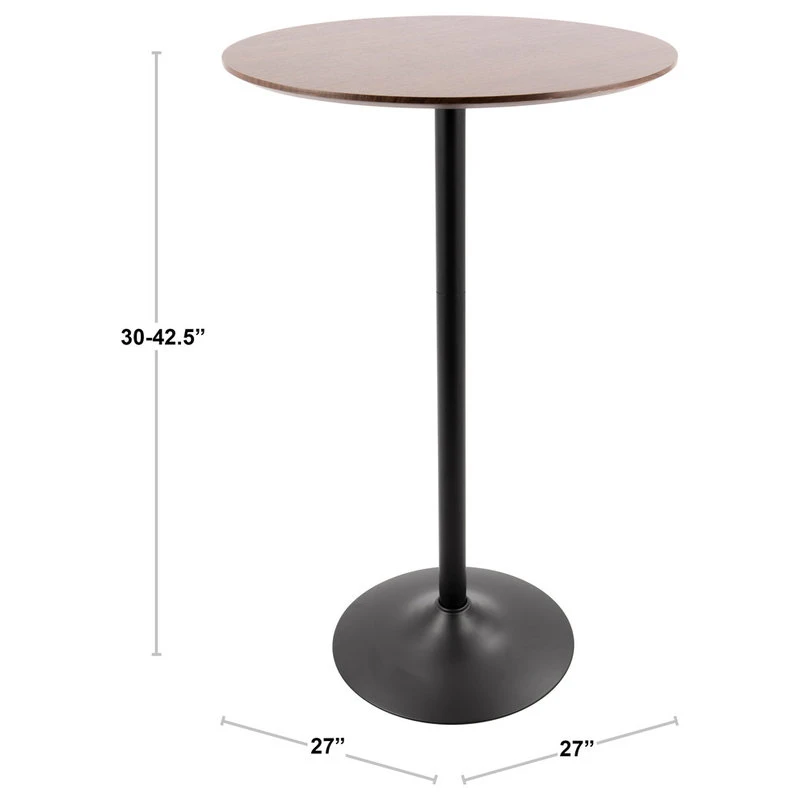 Create a cozy pub or bistro atmosphere in your home with the mid-century modern design of the Pebble Table. This sleek table has a great black metal base with a warm walnut wood top that adds a rich contrast. The Pebble Table is adjustable from 30″ dining height OR 42″ bar height.