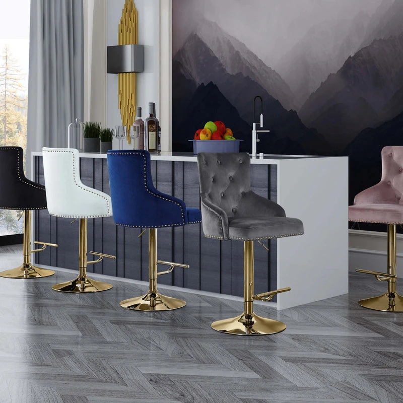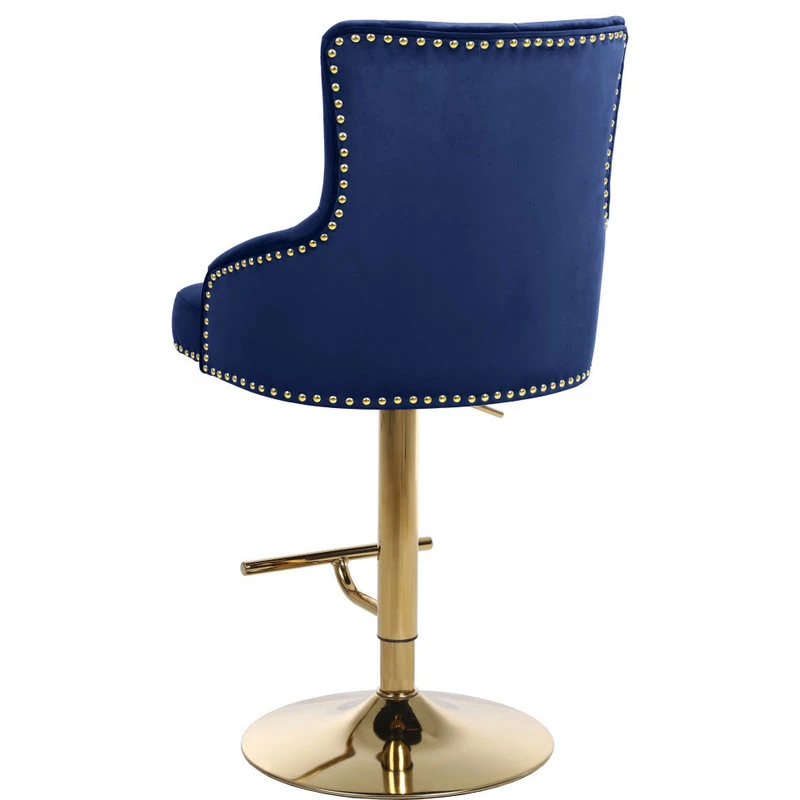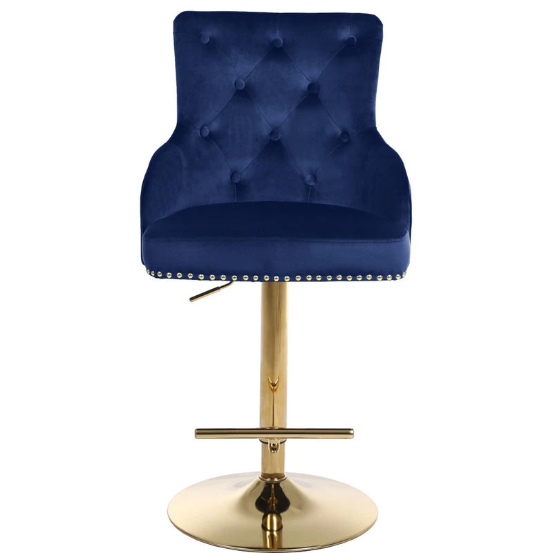 Make this Claude Navy Velvet Adjustable Stool everyone’s new favorite seat. The high-back design supports guests in comfort, while rich velvet upholstery in a crisp navy color gives the stool a svelte, modern look. Gold nailhead trim adds another level of luxury, and the tufted design enables the cushioned back to keep its loft for maximum comfort. Add it to the bar or the kitchen counter to create a modish vibe in your room.