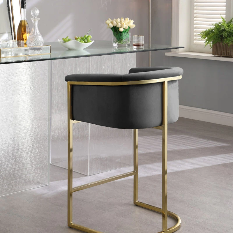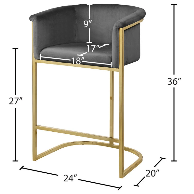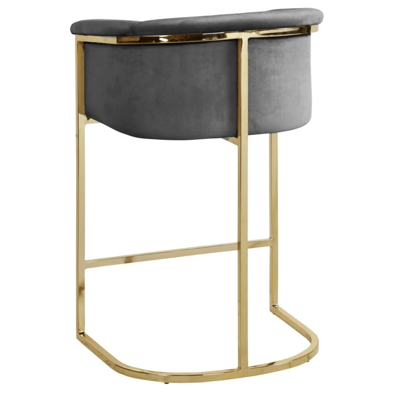 Complement your contemporary home furnishing with this Donatella Grey Velvet Stool from Meridian Furniture. Its curved design and rich beige velvet upholstery provides a comfortable, soft, luxurious seat for you to relax in, while also adding a touch of elegance to your living space. Its gold steel base adds the perfect balance to the stool’s soft neutral grey color, in addition to holding the stool up to counter height and providing durable support for years to come.