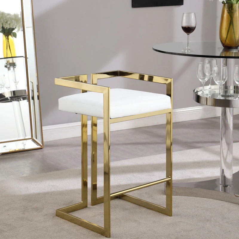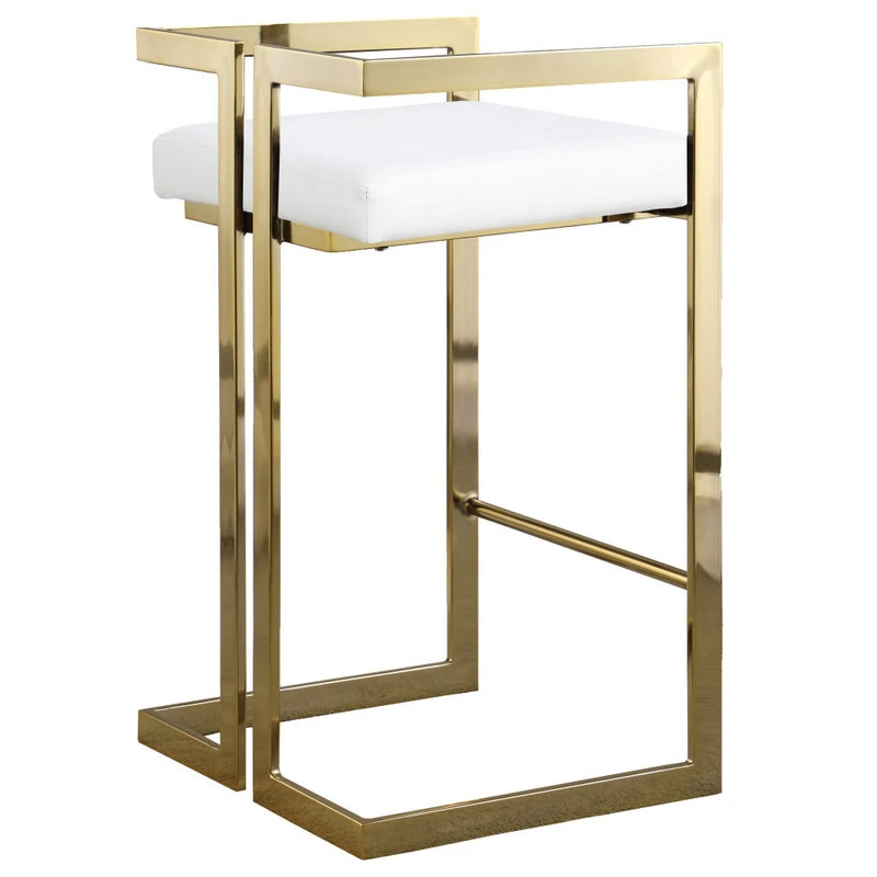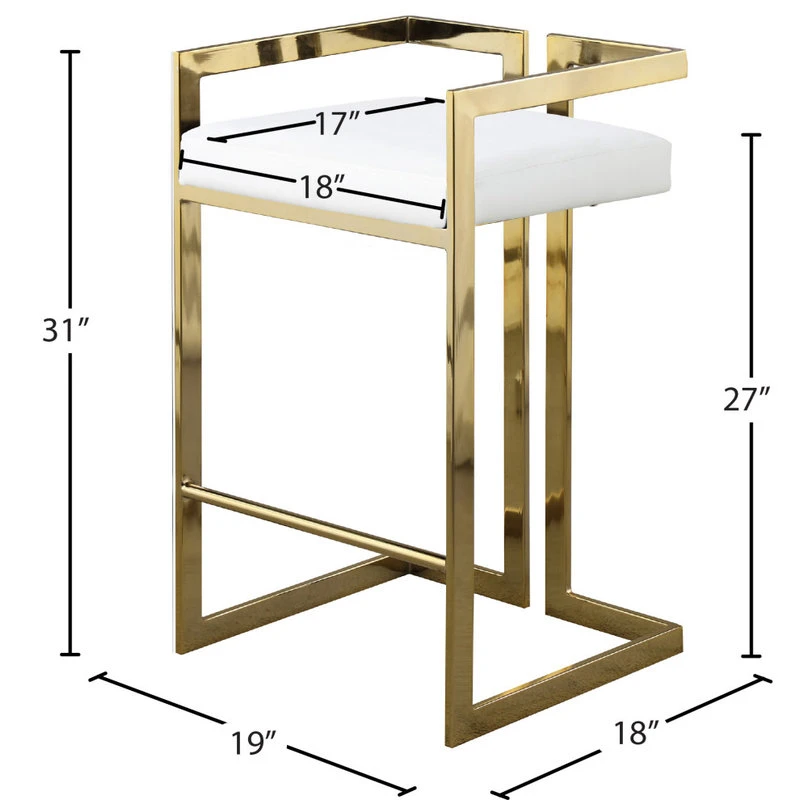 Make guests want to stay ’till closing time” when you equip your home bar or your kitchen counter with this elegant and eye-catching Ezra White Faux Leather Counter Stool. A goldtone steel base is sturdy, strong, and just glitzy enough to give the stool a standout look in your space. The counter height is ideal for versatile applications, and the stool is topped with a soft cushion for supreme sitting comfort. Upholstery with white faux leather gives the stool an upscale look while being easy to clean and maintain.